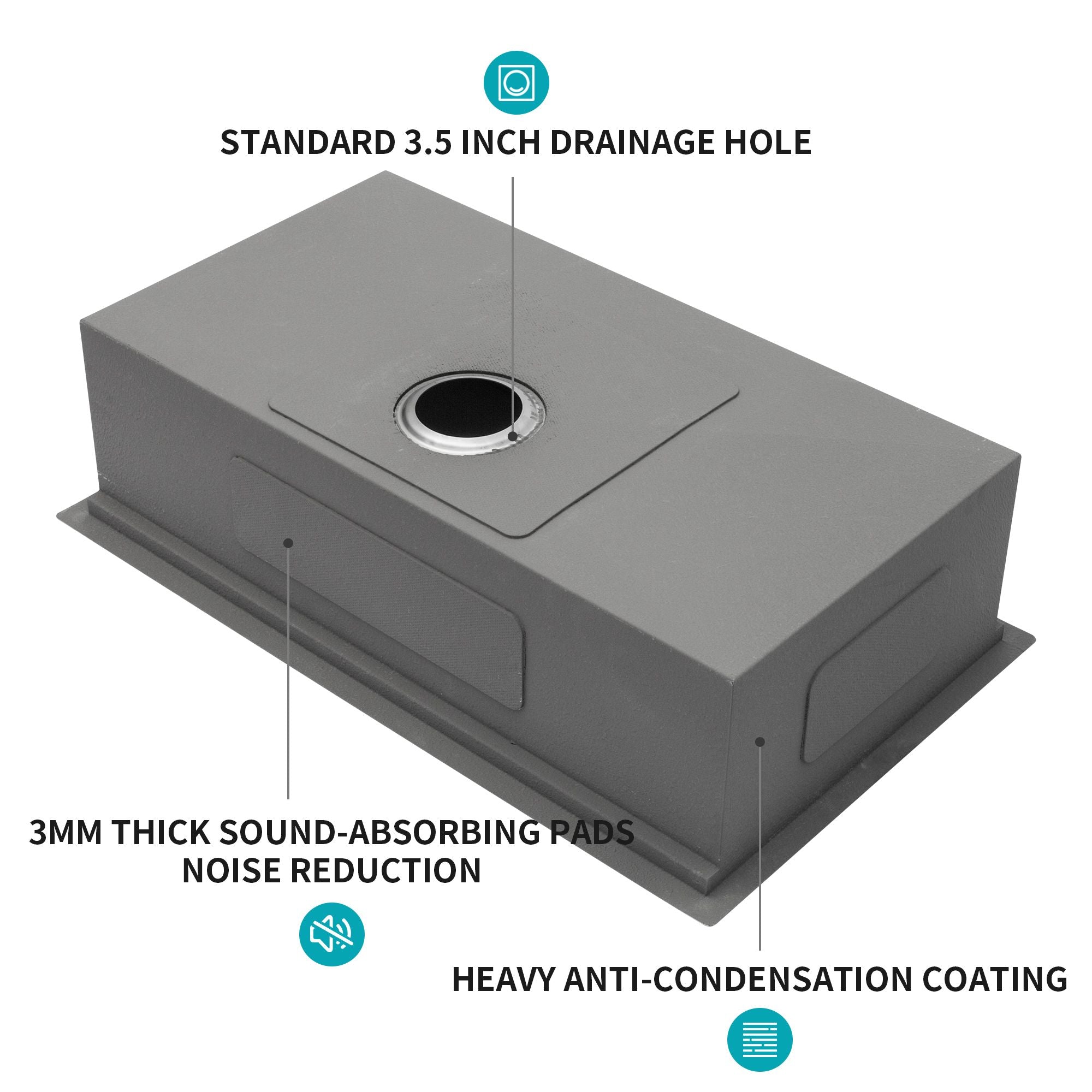 [Coating and Silencer Pad]There is a thick coating on the outside of the sink to prevent condensation caused by weather changes. In addition, the 3mm thick rubber silencer pad can greatly reduce the noise from the faucet and give you a quieter cooking environment.