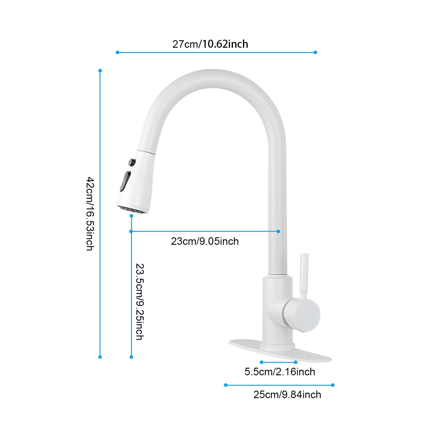 Two water output settings (stream, spray) to meet your various needs, such as washing dishes, filling water or rinsing fruits and vegetables.