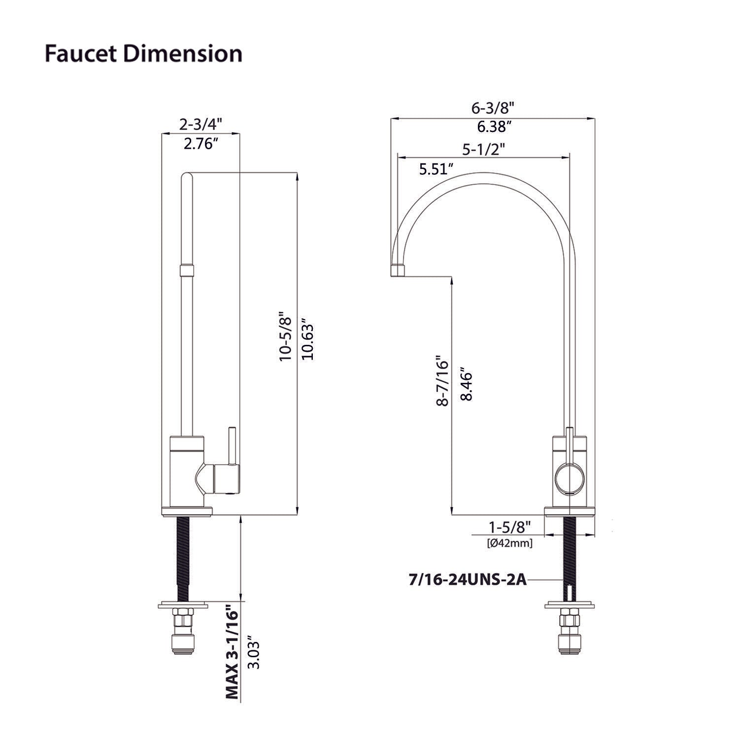 Overall Faucet Height: 10.63" Spout Reach: 5.51" Spout Height: 8.46''